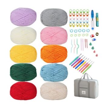Eidoct Crochet Kit for Beginners with 10-Color Yarn, Hooks, Markers