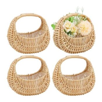 FREEBLOSS 4 Flower Girl Baskets with Handles, Waterproof Lining, 7x5x7.2in