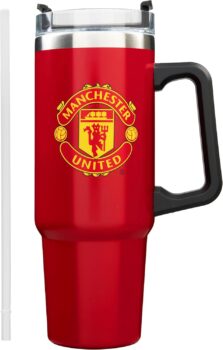 Get Trend Manchester United Insulated Tumbler 850ml, Stainless Steel Water Bottle with Straw & Handle, Cold for 12H Hot for 8H, Leakproof Travel Coffee Mug Drinks Bottle, Football Gifts (Red Man U)