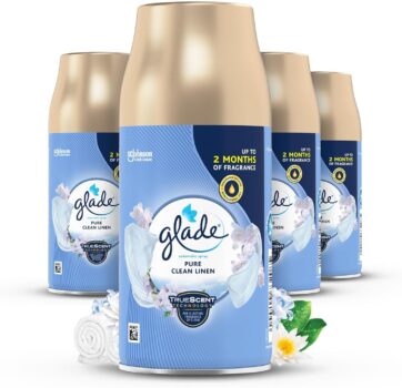 Customise your home air freshening experience with Pure Clean Linen Glade Automatic Spray. Choose a setting on the holders timer to have your home fragrance automatically dispensed into a room every 9, 18 or 36 minutes, or press the boost button for an instant burst anytime you want it. Manufacturer Contact Information SCJ Ltd. Camberley GU16 7AJ