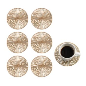 Gold Glass Coaster Set, 6 Pcs, 10×10 Cm, Cork Backed