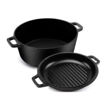 KICHLY 2 in 1 Cast Iron Dutch Oven with Dual Purpose Lid
