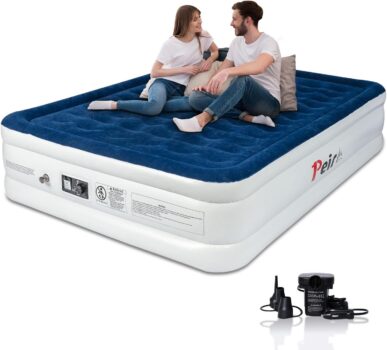 QUICK 3-MINUTE SETUP: Peirhws air mattress with pump inflates in 3-5 minutes to your desired level of comfort using only the push of a knob. Whether you prefer a soft or firm air mattress, we have you covered.