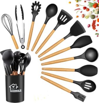 Safe and Durable: Made with top-quality materials, including premium silicone and natural wood handles, which are BPA-free, non-toxic, and high-temperature resistant (up to 446F).