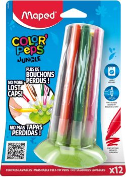 WASHABLE INK: Maped has also thought of parents by designing a range of washable ink markers (in machine or soapy water). 12 medium point, soft and flexible nibs with a diameter of 2.8mm. Refillable with Maped Jungle Felt Pens.