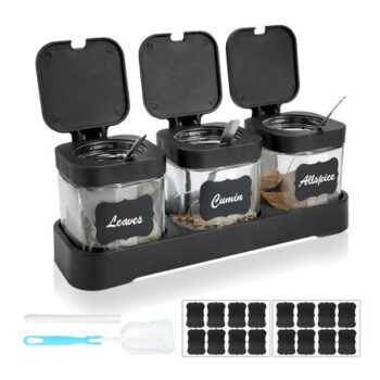 MOAMUN 3-Pack Glass Seasoning Jars with Tray and Lids