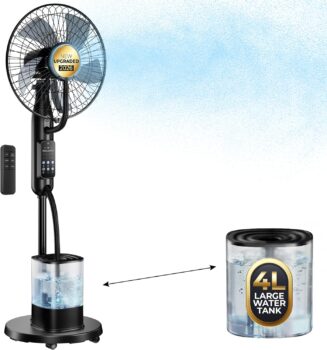 Whole-Room Airflow with Powerful Cooling:Fed up with uneven hot zones Our pedestal misting fan has 70 horizontal oscillation and 15 vertical tilt, delivering soft airflow and fine mist to every corner. Versatile for living rooms, bedrooms, offices, dining rooms and small balconies, it features a sturdy base, smooth-rolling wheels for easy mobility, and a 1.5m power cord for flexible placement. Enjoy all-around cooling that banishes stuffy heat anywhere you need.