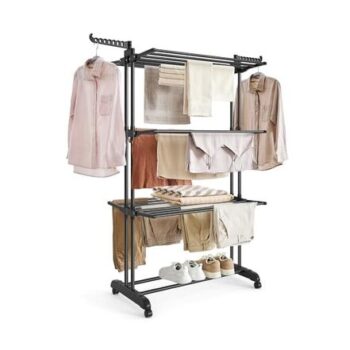 SONGMICS Large Foldable 4-Tier Stainless Steel Clothes Drying Rack