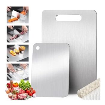 Stainless Steel Dual-Sided Chopping Board with Non-Slip Mat 34x23cm