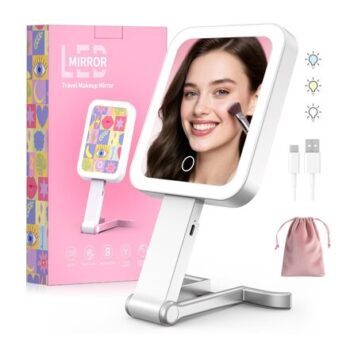 Travel Makeup Mirror with Lights, Rechargeable 10X/1X – Pink