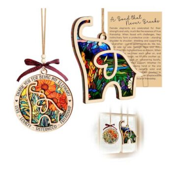 Wooden Elephant and round Pendant Ornament Set with Story Card