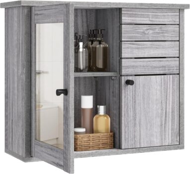 Spsce Efficient: Measuring 60 cm in length, 20 cm in width, and 49.2 cm in height, this bathroom wall cabinet optimizes wall space, freeing up valuable floor and countertop a