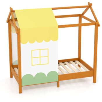 It is a whimsical addition that sparks imagination and adds a touch of playfulness to bedtime. Crafted with a sturdy fir wood frame, it effortlessly withstands a weight of up to 100 kg, ensuring lasting durability and stability. Also, it has 12 solid wood slats and anti-slip foot pads to further enhance stability. A dream-like hideaway is created with a removable canopy made of tear-proof and washable polyester fabric.