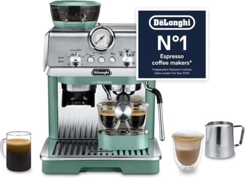 DeLonghi La Specialista Arte EC9155.GR, Barista Pump Espresso Machine, Bean to Cup Coffee and Cappuccino Maker, 8 Grinding Settings, MyLatte Art Frothing Wand, 1550W, Green