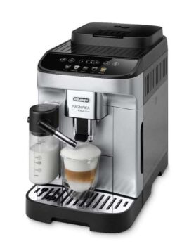 The Magnifica Evo embodies the DeLonghi experience with its advanced technology, authentic beverages and sleek, titanium and black design.