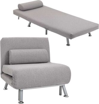 HOMCOM Single Sofa Chair Bed, Linen Fabric 3-in-1 Convertible Sleeper Chair with 5-Position Adjustable Backrest