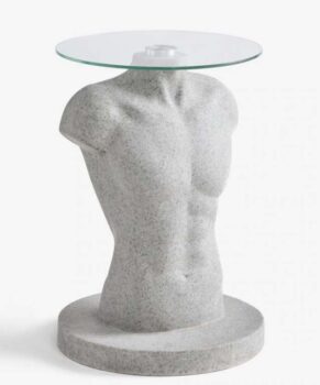 This bold Silhouette side table makes a striking statement, featuring a modern male torso silhouette meticulously crafted from resin with a light, textured finish.