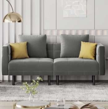 The backrest of this modern sofa offers three adjustable angles, the seat can be splited into two chic lounge chairs. Included two matching back cushions and two eye-catching contrasting corduroy throw pillows to give your space that extra dash of personality. And with eight sturdy metal legs and a nifty linking piece for easy setup and takedown, you can be sure this beauty is as practical as it is stylish.