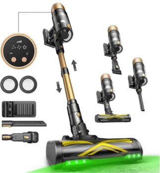 See Hidden Dust, Clean PeacefullyA built-in green LED headlight illuminates hidden dust in dark corners, ensuring nothing is missed. Thanks to advanced noise reduction tech, it operates in lower noisequiet enough to clean early in the morning or late at night without disturbing the family.