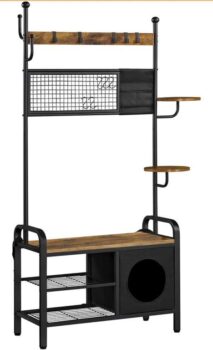Kitty & Hooman Shared Comfort: Keep your shoes, coats, and everyday essentials neatly organized while giving your cat a cozy, playful retreat. This human-cat hall tree transforms your entryway into a tidy, cat-friendly space where you and your kitty can share everyday