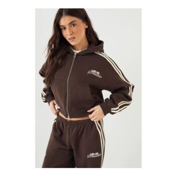 Dark Chocolate Side Stripe Boxy Zip through Hoodie