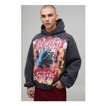 Man Oversized Boxy Acid Wash Heavy Metal Graphic Distressed Hoodie