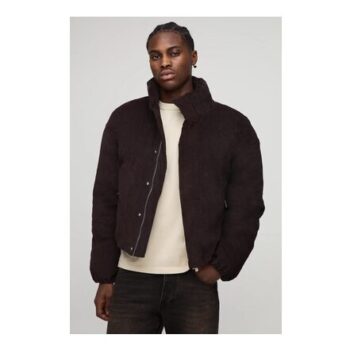 Man Boxy Fit Textured Velour Funnel Neck Puffer Jacket