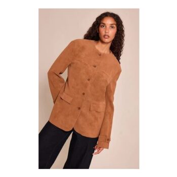 PrettyLittleThing Collarless Button Detail Faux Suede Jacket