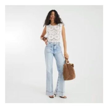 Blue High Waisted Front Pocket Wide Leg Jeans