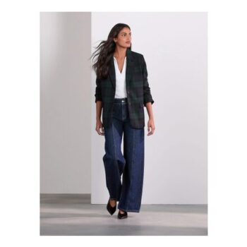 Dark Blue Gold Horsebit Detail High Rise Wide Leg Jeans