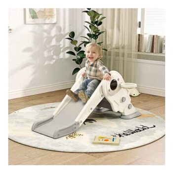 AIYAPLAY 3-in-1 Kids Slide with Hoop and Climber, Cream White