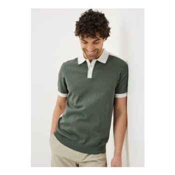 Green Colour Block Knitted Polo Shirt