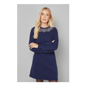 Save 70% on Petite Navy Embellished Knitted Shift Dress at Wallis