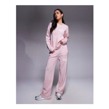 Weekend Collective Co-Ord Knitted Wide Leg Jogger with Varsity Graphic in Pink