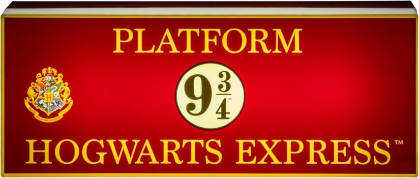 All aboard the Hogwarts Express: Wizards and witches will love this replica of the Platform 9 3/4 sign that hangs alongside the Hogwarts Express, especially when it lights up
