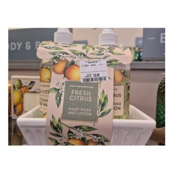 Fresh Citrus Hand Wash and Lotion Set with Dish