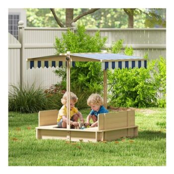 Kids Square Wooden Sandpit Children Cabana Sandbox Outdoor Playset