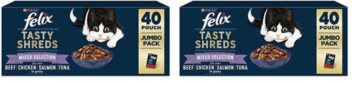 FELIX Tasty Shreds Mixed Selection in Gravy Wet Cat Food 40x80g (Pack of 2) (£18.81 S&S)
