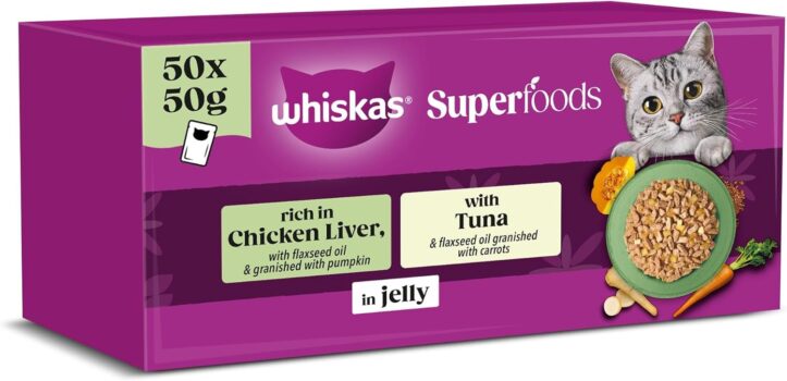 WHISKAS SUPERFOODS Adult Wet Cat Food in Jelly 50x50g Mixed