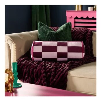 OHS Pink/Burgundy Check Print Bolster Pillow