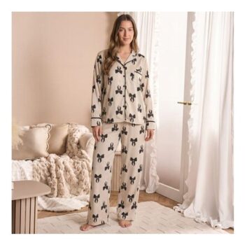 Bow Print Button through Pyjama Set