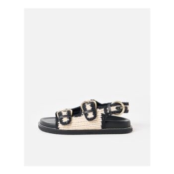 Save £40 on Cream & Black Raffia Double Buckle Chunky Sandals at Oliver Bonas