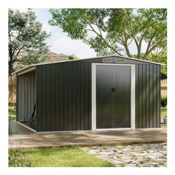 Breeins Large Metal Shed with Built-in Log Store 10ft X 8ft