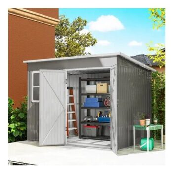 Outsunny 8.5x6ft Galvanised Steel Garden Shed with Foundation Kit