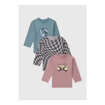 3 Pack Boys Multicolour Checkerboard Gamer T-Shirts (7-15yrs)