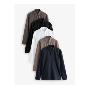 Black/White/Navy/Neutrals Long Sleeve Jersey Polo Shirts 5 Pack