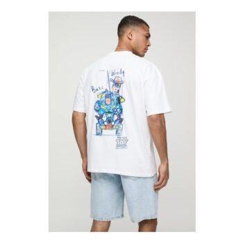 Man White Oversized Extended Neck Disney Toy Story License T-Shirt
