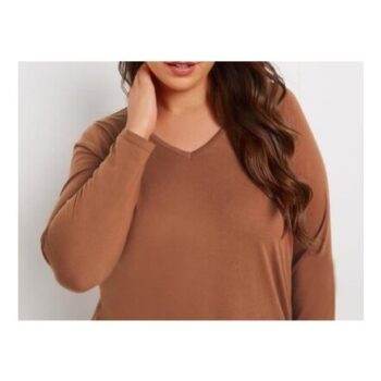 YOURS 3 PACK Curve Brown & Khaki Green Long Sleeve V-Neck T-Shirts