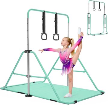 Turn Your Home into a Safe, Fun Gymnastics Studio This foldable gymnastics bar set is designed to grow with your child, offering a safe, versatile way to build strength, balance, and flexibilityno expensive gym membership required. Stability You Can Trust: The triangular frame and 6-point base eliminate wobble, so kids can focus on their moves instead of staying steady. Grows with Them: 4 height settings mean this bar will last for years, adapting to your childs changing skill level and heig