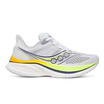 The Speed Endorphin 5 uses a brand-new engineered mesh upper, lighter and more durable than the previous version. The newly designed upper uses larger perforations in the mesh to increase airflow, allowing cooler air into the shoe while removing built-up heat, keeping feet cool, dry and comfortable at all times. Built with comfort in mind so you can enjoy it every day, Saucony has used its FORMFIT technology to surround the foot in a made-for-me feel, which accommodates the feet, giving them a feeling like these shoes were made specifically for you. Completing the upper is a traditional lacing system which locks down the midfoot to reduce in-shoe slippage so you can enjoy distraction-free strides.